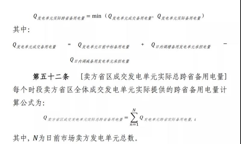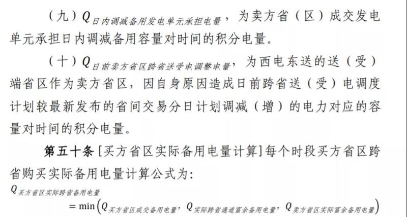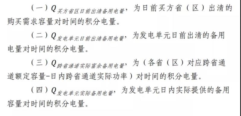 第五十一條 [發(fā)電單元實(shí)際備用電量計(jì)算]每個(gè)時(shí)段賣(mài)方省區(qū)單個(gè)發(fā)電單元跨省備用實(shí)際電量公式為: