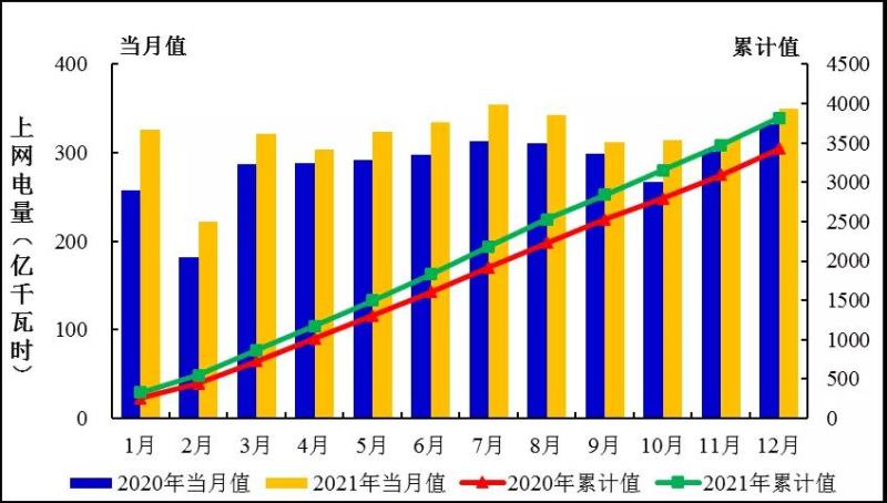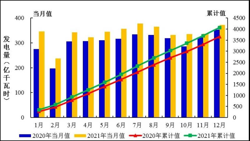 圖1:2021年1-12月全國發(fā)電量統(tǒng)計分布