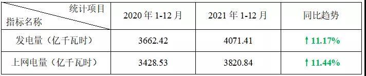 2) 福清核電廠6號機(jī)組于2021年11月6日首次裝料,截止12月底暫未并網(wǎng)發(fā)電,發(fā)電量、上網(wǎng)電量、核電設(shè)備利用小時數(shù)和機(jī)組能力因子暫不適用統(tǒng)計。