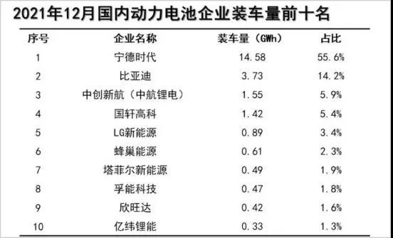 根據(jù)中國汽車動(dòng)力電池產(chǎn)業(yè)創(chuàng)新聯(lián)盟的最新數(shù)據(jù),寧德時(shí)代12月在國內(nèi)的裝機(jī)量水平是中航鋰電和國軒高科的十倍左右,是蜂巢能源、孚能科技、欣旺達(dá)、億緯鋰能的幾十倍。