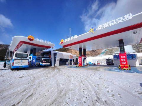 北京冬奧會(huì)氫燃料電池車在中國(guó)石油崇禮北綜合能源服務(wù)站補(bǔ)充氫氣