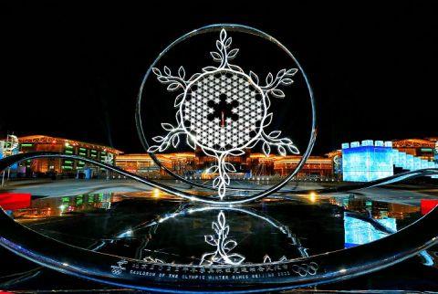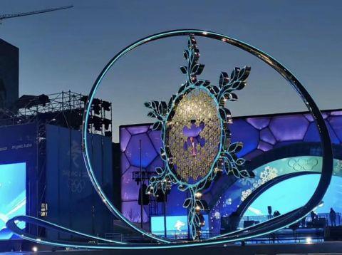 水立方(冰立方)場(chǎng)館旁的北京賽區(qū)火炬臺(tái)