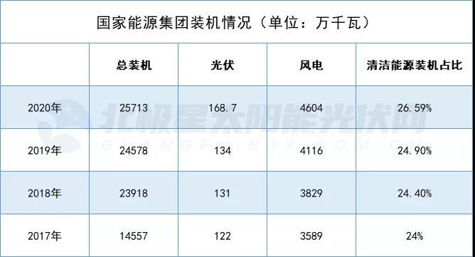 一直以來,國家能源集團雖然在新能源的裝機總規(guī)模排位靠前,但其清潔能源占比偏低。截至2020年末,國家能源集團的清潔能源裝機占比為26.59%,在五大發(fā)電集團中排位最末。尤其是光伏領(lǐng)域,占比僅為0.65%,成為國家能源集團需要補足的“短板”。