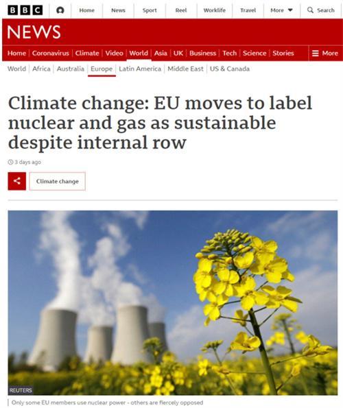 據(jù)BBC報(bào)道,近日,歐盟委員會表示,核能和天然氣可以算作“綠色能源”。如果這兩種能源滿足了特定的條件,就可以將其歸類為“可持續(xù)性投資”。歐盟的內(nèi)部市場專員蒂埃里布雷頓表示,為了滿足日益增長的電力需求,并實(shí)現(xiàn)節(jié)能減排的目標(biāo),歐洲未來30年將需要在核能方面投資5000億歐元。