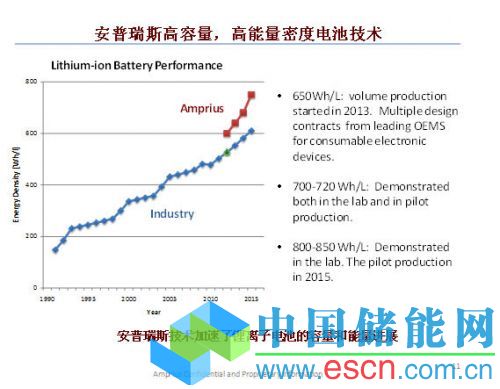 當然,他們的下一步是動力電池,現(xiàn)在全球特斯拉汽車刮起的旋風,加速了他們在動力電池上的研發(fā)進程。“我們的動力電池采用硫正極-硅負極,會比目前的一些普通鋰動力電池能量密度提升2倍?!焙蜗蜿柗Q,他們目前已小試出來的動力電池,能量密度可達350Ah/gk。他們今年已在中國設(shè)立動力電池子公司,從屬于南京安普瑞斯公司。