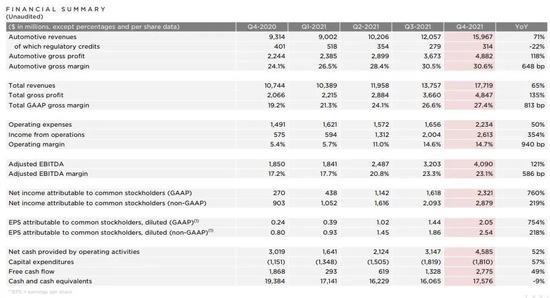 數(shù)據(jù)顯示:2021年,特斯拉交付量超過93.6萬輛,同比增長87.4%。根據(jù)特斯拉財報,其2021年?duì)I業(yè)收入538.23億美元,同比增長71%;歸母凈利潤76.4億美元,同比增長211%。按照當(dāng)前匯率計(jì)算,76.4億美元相當(dāng)于485.7億元人民幣,粗略計(jì)算,特斯拉去年平均每天凈賺超1億元人民幣。