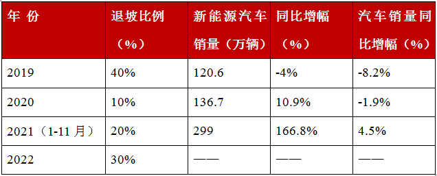 “新能源汽車補貼剛剛退坡之初的2019年,還有的企業(yè)不太適應(yīng),多種因素導(dǎo)致當(dāng)年新能源汽車銷量下滑,但從2020年的10%到2021年的20%,再到2022年的30%,政策調(diào)整為循序漸進逐步退坡,企業(yè)也在市場磨礪中逐漸適應(yīng)并增強了市場競爭力?!睏钣滥曛v到,從相關(guān)數(shù)據(jù)可以看出,與整個汽車市場銷售情況相比,新能源汽車銷量在逐步增長,且領(lǐng)先整個汽車市場的幅度也越來越大。