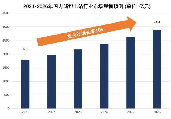 未來,隨著儲(chǔ)能技術(shù)與應(yīng)用策略的成熟、儲(chǔ)能應(yīng)用市場(chǎng)與價(jià)格機(jī)制的建立,我國(guó)實(shí)現(xiàn)能源結(jié)構(gòu)向低碳化轉(zhuǎn)型指日可待。未來幾年儲(chǔ)能電站市場(chǎng)規(guī)模將以10%的速度增長(zhǎng),至2026年市場(chǎng)規(guī)模將超過2800億元。