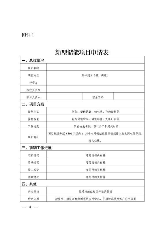 各申報(bào)單位需按要求填報(bào)項(xiàng)目申請表(附件1)、編制項(xiàng)目建議書(附件2)。項(xiàng)目申請材料要求于2月15日前報(bào)至項(xiàng)目所在地能源主管部門,請各市能源主管部門于2月18日前完成項(xiàng)目匯總并行文報(bào)送至省能源局,同時(shí)報(bào)送電子版。省能源局將組織對申報(bào)項(xiàng)目進(jìn)行審核評審,確定示范項(xiàng)目名單,并在省發(fā)展改革委網(wǎng)站上公示。公示無異議的,確認(rèn)為新型儲能示范項(xiàng)目。