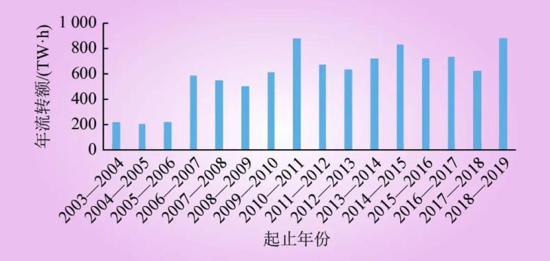 根據(jù)IEA和AFMA的數(shù)據(jù),2018—2019年,澳大利亞場內(nèi)交易的電力期貨達到891 829 GW?h,是現(xiàn)貨市場體量的3.5倍。圖1是2003—2019年AFMA統(tǒng)計的電力期貨合約年度流轉(zhuǎn)額,可以反映出期貨的流動性良好,呈現(xiàn)較穩(wěn)定的增長趨勢。
