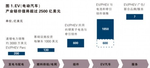 我們預(yù)計,截至2020年,全球純電動汽車全產(chǎn)業(yè)價值鏈規(guī)模將超過2500億美元。如圖1所示。