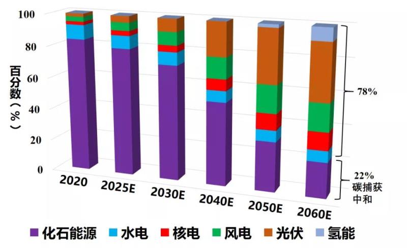 目前能源領(lǐng)域碳排放總量大、占比高,這主要是源于化石能源的大量開采和利用,使得二氧化碳等溫室氣體排放量急劇增加。為實(shí)現(xiàn)碳中和,亟待變革能源利用方式和調(diào)整能源結(jié)構(gòu)。一方面,改變化石能源利用方式、提高化石能源轉(zhuǎn)化效率、促進(jìn)化石能源的清潔高效利用,從而達(dá)到節(jié)能減排的目的;另一方面,我國(guó)目前的資源結(jié)構(gòu)為“富煤、少油、缺氣”,亟需改變能源結(jié)構(gòu),提高新能源和清潔能源的占比,大力推進(jìn)低碳能源替代高碳能源、可再生能源替代化石能源??偟膩碚f,發(fā)展新能源,實(shí)現(xiàn)能源轉(zhuǎn)型,降低化石能源消費(fèi),提高能源利用率,節(jié)能減排,構(gòu)建綠色低碳的能源體系,是降低二氧化碳排放、實(shí)現(xiàn)碳中和的重要舉措。