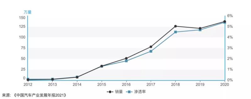 據(jù)工信部2021年中國汽車產(chǎn)業(yè)發(fā)展年報統(tǒng)計顯示,我國新能源汽車銷量和市場滲透率呈高速增長趨勢,截至2020年銷量連續(xù)六年位居全國第一[13]。