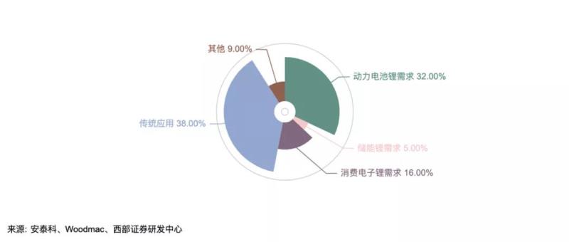 據(jù)統(tǒng)計,2020年鋰的下游消耗在動力電池、儲能電池、消費電子、其他傳統(tǒng)應(yīng)用領(lǐng)域分別為32%、5%、16%、38%,2025年動力電池領(lǐng)域的鋰消耗量占比預(yù)估將達到70%[4]。