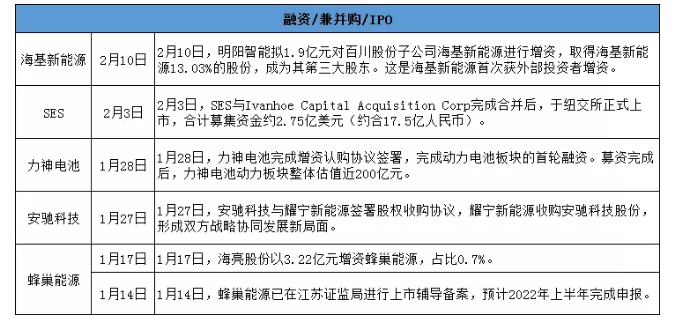 其中,SES在紐交所成功上市,蜂巢能源已進(jìn)行上市輔導(dǎo)備案,力神電池、安馳科技、?;履茉吹染@得外部資本青睞。