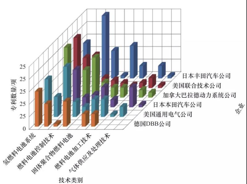 圖 3 氫燃料電池代表性企業(yè)的研發(fā)重心布局