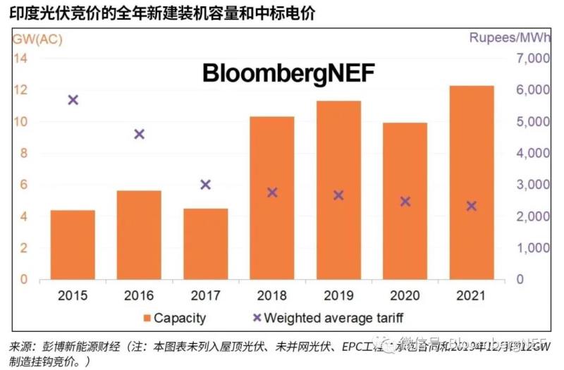 中國儲能網(wǎng)訊:印度在2021年的光伏競價規(guī)模超過12GW(交流側)。盡管光伏組件價格經(jīng)歷了史無前例的上漲,但低廉的利率推動了電價走低。多數(shù)競價出現(xiàn)了顯著的超額認購現(xiàn)象,表明電力生產(chǎn)商對印度的光伏前景保持樂觀。