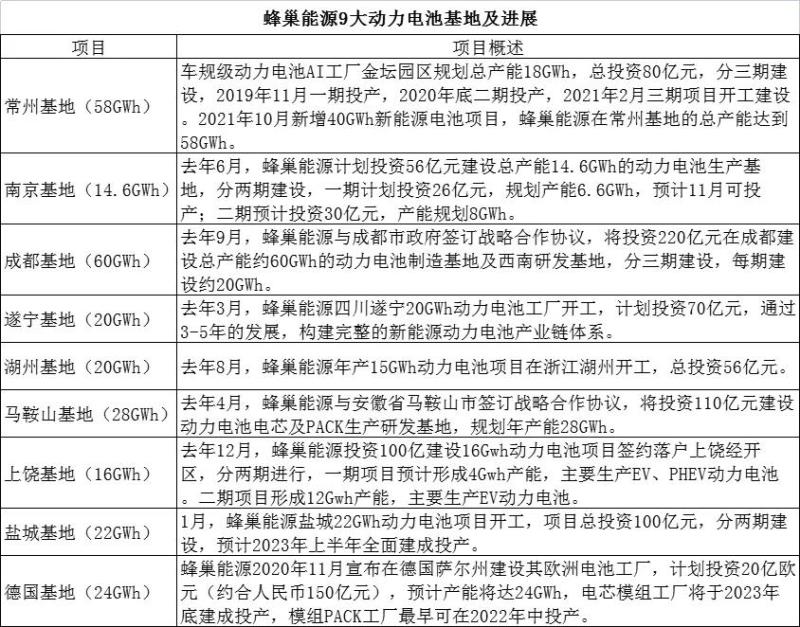 2025年產(chǎn)能規(guī)劃由280GWh提升至600GWh。目前,蜂巢能源已經(jīng)在國(guó)內(nèi)外建設(shè)了9大生產(chǎn)基地,其中國(guó)內(nèi)部署了常州金壇、湖州、馬鞍山、成都、遂寧、南京、鹽城、上饒8大基地,海外部署德國(guó)生產(chǎn)基地。