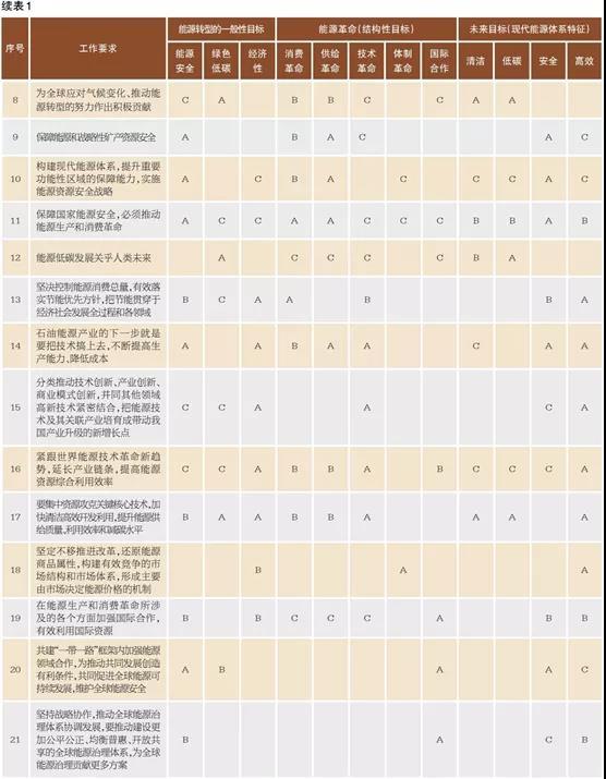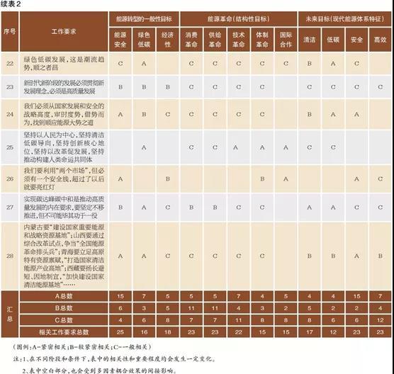 中國儲能網訊:1月7日,《人民日報》發(fā)表署名文章《能源的飯碗必須端在自己手里——論推動新時代中國能源高質量發(fā)展》,系統梳理了近年來黨中央關于能源安全、傳統能源和新能源發(fā)展、能耗“雙控”、能源技術創(chuàng)新和能源國際合作等多方面的工作要求(可總結為28條要求)。為了深入理解這28項工作要求對我國能源發(fā)展的具體指導方向與工作側重點,筆者從能源轉型目標、能源革命和能源未來目標三個方面對上述工作要求進行梳理與分析,并以相關性緊密程度形式呈現(見表,其中A表示緊密相關,B表示較緊密相關,C表示一般相關)。其中,能源轉型目標指出了現階段我國能源發(fā)展最應重視的方面與問題;能源革命指出了我國能源發(fā)展應采取的戰(zhàn)略路徑與重要措施;能源未來目標體現的是新時代我國新型能源體系應具備的特征。值得重視的是,我國在踐行“能源的飯碗必須端在自己手里”的進程中,需要堅持系統觀念并與時俱進,在處理多重關系的過程中,確保能源轉型適應經濟社會發(fā)展需要,確保轉型進程中的能源安全。