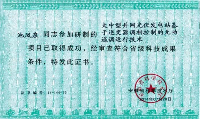 2014年,中匯電氣參與“大中型并網(wǎng)光伏發(fā)電站基于逆變器調(diào)相控制的無功遙調(diào)技術(shù)”科研項目,并榮獲“省級科研成果”獎。結(jié)合應(yīng)用“逆變器無功群控群調(diào)技術(shù)”成功開發(fā)RE-7000 AGC/AVC功率控制系統(tǒng)。