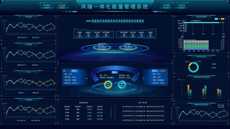 能量管理系統(tǒng)(EMS)是智能電網(wǎng)監(jiān)控系統(tǒng)中的神經(jīng)中樞和能量管理中心,對智能電網(wǎng)內(nèi)(包括微電網(wǎng),儲能電站)各種各類設(shè)備運行、環(huán)境狀態(tài)及人員管理進行綜合的信息感知、監(jiān)控保護測控裝置、BMS及PCS的運行信息,集成微網(wǎng)系統(tǒng)發(fā)電和儲能監(jiān)控、供電監(jiān)控等功能。同時實現(xiàn)計劃運行模式、調(diào)度運行模式,并根據(jù)當前電池組、微網(wǎng)逆變器、風機的運行信息合理的分配調(diào)節(jié)指令。