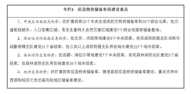 充分利用倉儲資源,依托現(xiàn)有中央和地方物資儲備庫,建設(shè)綜合應(yīng)急物資儲備庫。在交通樞紐城市、人口密集區(qū)域、易發(fā)生重特大自然災(zāi)害區(qū)域建設(shè)一批綜合性國家儲備基地。建設(shè)完善國家綜合性消防救援隊伍應(yīng)急物資儲備庫及戰(zhàn)勤保障站。在關(guān)鍵物流樞紐建設(shè)應(yīng)急物資調(diào)運平臺和區(qū)域配送中心,依托大型快遞物流企業(yè)建設(shè)一批綜合應(yīng)急物資物流基地。完善國家應(yīng)急資源管理平臺和應(yīng)急物資保障數(shù)據(jù)庫,匯聚應(yīng)急物資信息。
