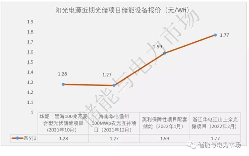 陽(yáng)光電源1.77元/Wh的中標(biāo)單價(jià),相對(duì)于其2022年1月英利項(xiàng)目入圍報(bào)價(jià)1.59元/Wh,上浮了11.3%。而相對(duì)于該公司2021年底光伏儲(chǔ)能項(xiàng)目單價(jià)1.27元/Wh,此次報(bào)價(jià)更是上浮了39.4%。這一價(jià)格也達(dá)到了近期該公司投標(biāo)價(jià)格的最高值。