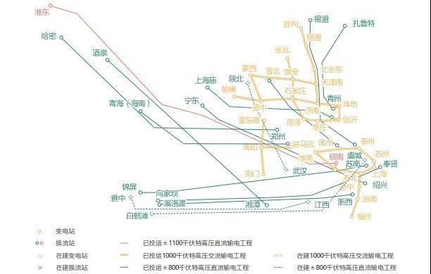 其中,國家電網(wǎng)新疆(準(zhǔn)東)—華東(皖南)±1100千伏特高壓直流輸電工程是世界上電壓等級最高、輸送容量最大、輸送距離最遠(yuǎn)、技術(shù)水平最先進(jìn)的特高壓輸電工程,換流容量2400萬千瓦,線路長度3324Km,途經(jīng)新疆、甘肅、寧夏、陜西、河南、安徽6?。▍^(qū)),工程總投資407億元人民幣。