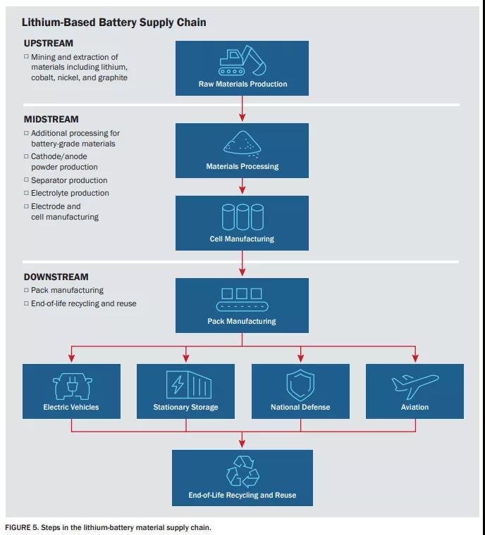 2021年6月,DOE根據(jù)行政命令14017(Executive Order 14017)“America’s Supply Chains”,發(fā)布了一份為期100天的大容量電池供應(yīng)鏈評估報告。建議建立關(guān)鍵材料的國內(nèi)生產(chǎn)和加工能力,以支持完全國內(nèi)的端到端電池供應(yīng)鏈。拜登總統(tǒng)的兩黨基礎(chǔ)設(shè)施法案撥款近70億美元,用于加強美國電池供應(yīng)鏈,包括在不進(jìn)行新開采或采礦的情況下生產(chǎn)和回收關(guān)鍵礦物,以及為國內(nèi)制造業(yè)采購材料。