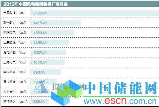 與2012 年的新增裝機量相比,2013年外資整機制造商沒有一家進入前1 0名,金風(fēng)科技獨占鰲頭,華銳風(fēng)電、聯(lián)合動力新增裝機量大量下滑,遠景能源快速崛起。2013年,新增裝機排名前5的風(fēng)電機組制造商所占市場份額由2012年的60%進一步下降至54.1%,同比下降了6 個百分點。