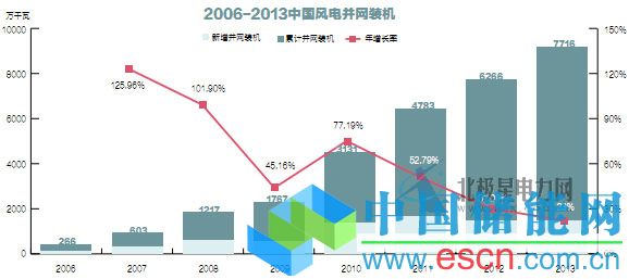 中國儲能網(wǎng)訊:2011年,我國風(fēng)電新增裝機1763萬千瓦,與2010年新增1892萬千瓦相比呈下降趨勢。這意味著,風(fēng)電自2005年以來連續(xù)5年持續(xù)升溫的趨勢開始出現(xiàn)轉(zhuǎn)折。不過,經(jīng)過 2012 年的低谷后,2013 年中國風(fēng)電新增裝機容量1610萬千瓦,較2012年的1296 萬千瓦大幅提高24%,中國風(fēng)電開始走向復(fù)蘇。