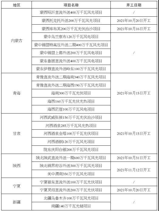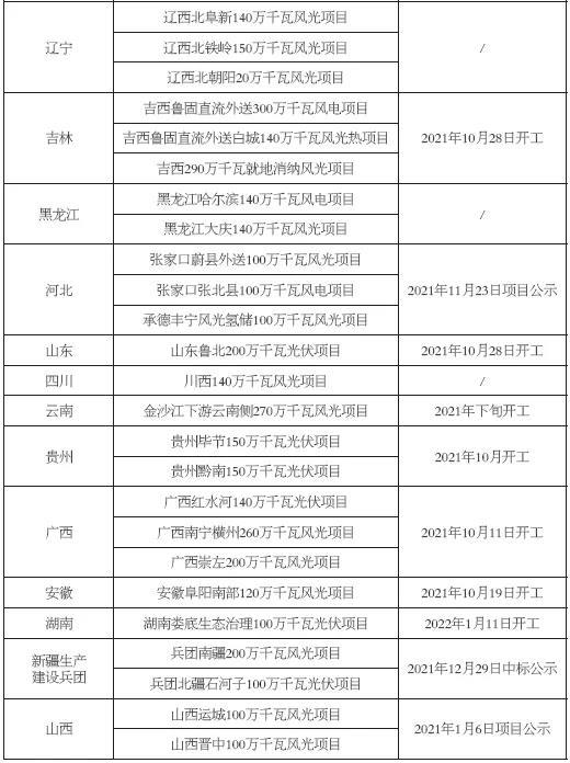 表1 第一批大型風(fēng)電光伏基地開(kāi)工情況匯總