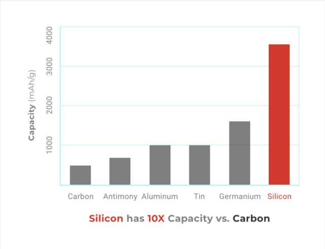 由于硅是能量密度最好的材料,因而使用100%硅材料意味著可以實現最高能量密度的鋰離子電池。
