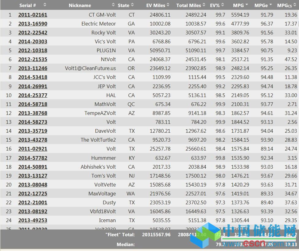 網(wǎng)站主頁上展示了沃藍(lán)達(dá)的車主們通過通用安吉星系統(tǒng)得到的行車數(shù)據(jù),并做了一個(gè)詳細(xì)的排名。目前排名第一車主積累了5萬英里的“電動(dòng)里程”,消耗了4000加侖汽油?!巴ㄟ^數(shù)據(jù)我可以知道什么樣的駕駛習(xí)慣是最節(jié)油的。”網(wǎng)站發(fā)起者M(jìn)ike Rosack說通用在去年提供了安吉星系統(tǒng)的接入口,他現(xiàn)在能每天看詳細(xì)的車輛運(yùn)行信息,然后盡可能保證少耗油。