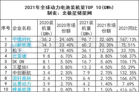 (注:全球動(dòng)力裝機(jī)排名中寧德時(shí)代、LG新能源、比亞迪、國(guó)軒高科、遠(yuǎn)景動(dòng)力、蜂巢能源都是儲(chǔ)能系統(tǒng)商)