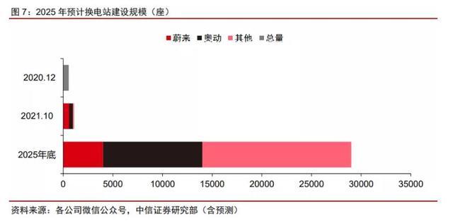 通聯(lián)數(shù)據(jù)datayes!顯示,截至2021年11月,國(guó)內(nèi)換電站的保有量?jī)H1192座,預(yù)計(jì)到2025年,配套換電站的需求超過(guò)28000座。據(jù)此測(cè)算,2021-2025年換電站有超過(guò)20倍的增長(zhǎng)空間,CAGR超過(guò)110%。
