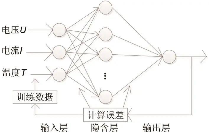 神經(jīng)網(wǎng)絡(luò)是基于生物神經(jīng)元之間傳遞信息方式建立起來(lái)的一種方法,它可以分布儲(chǔ)存信息和并行處理信息,具有高效性。結(jié)合其非線性的特點(diǎn),相較于決策樹、K近鄰、支持向量機(jī)等鋰電池建模方法,神經(jīng)網(wǎng)絡(luò)比較適用于鋰電池的建模研究。比較常用的是BP神經(jīng)網(wǎng)絡(luò)模型,其包括輸入層、隱含層、輸出層三層網(wǎng)絡(luò)結(jié)構(gòu),它將電壓、電流、溫度參數(shù)作為輸入,將電池的SOC作為輸出,且不斷反饋,以獲得適當(dāng)?shù)倪B接權(quán)值和偏差,在可以達(dá)到一定精度的同時(shí),也具有一定的速度優(yōu)勢(shì)。