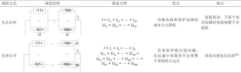 為了實(shí)現(xiàn)儲(chǔ)能系統(tǒng)的規(guī)?;?,需要對(duì)電池單體串并聯(lián)以提高其電流、電壓和輸出功率。常用的電池成組方式有先并后串和先串后并。