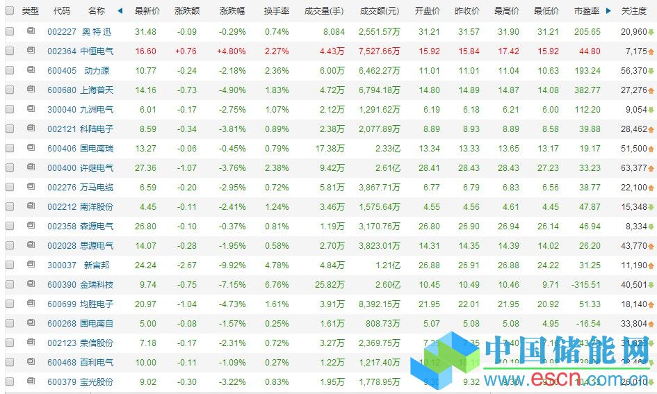 今日新能源汽車版塊暴跌,新宙邦(300037)跌9.92%,金瑞科技(600390)跌7.15%,萬(wàn)向錢潮(000559)跌5.62%,江蘇國(guó)泰(002091)跌5.53%,上海普天(600680)跌4.90%,均勝電子(600699)跌4.73%,比亞迪(002594)跌2.26%,許繼電器(000400)、南洋股份(002212)、動(dòng)力源(600405)、科陸電子(002121)、萬(wàn)馬電纜(002276)等跌幅超2%。