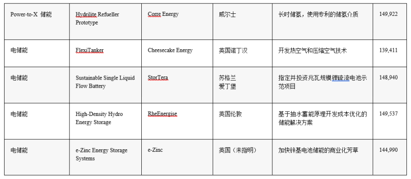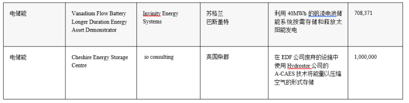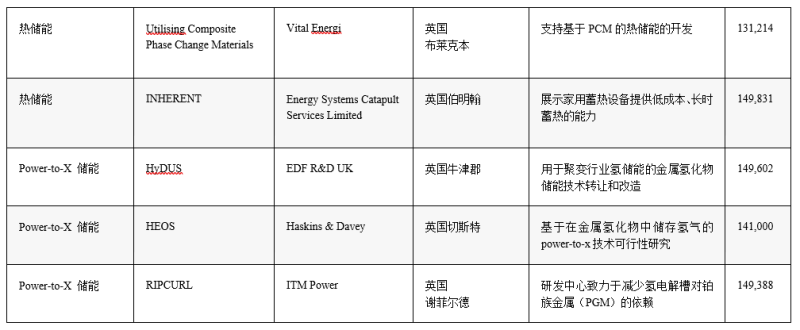 熱儲能技術符合這種條件,但沒有一個項目獲得第一輪資金支持。第一輪獲得資金支持的每個長時儲能項目將獲得471760英鎊至100萬英鎊不等資助。