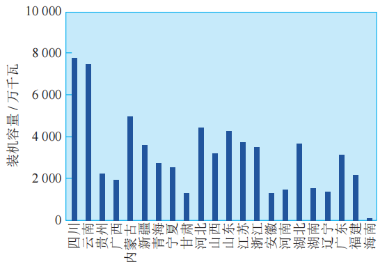 圖 5 我國重點地區(qū)非化石能源發(fā)電裝機容量分布