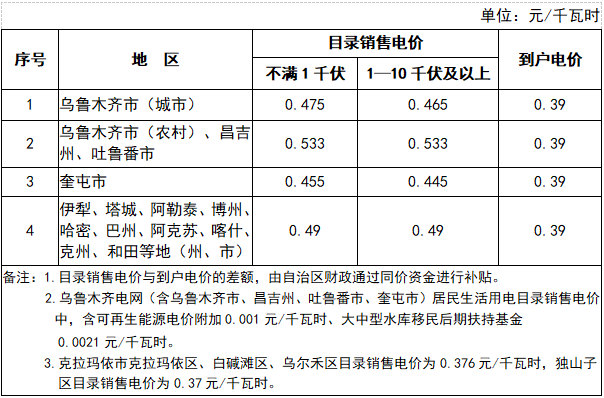 附件:新疆電網(wǎng)居民生活、農(nóng)業(yè)生產(chǎn)用電目錄銷售電價(jià)表