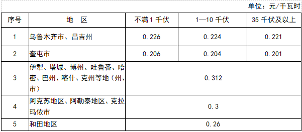 新疆電網(wǎng)農(nóng)業(yè)生產(chǎn)用電目錄銷售電價(jià)表