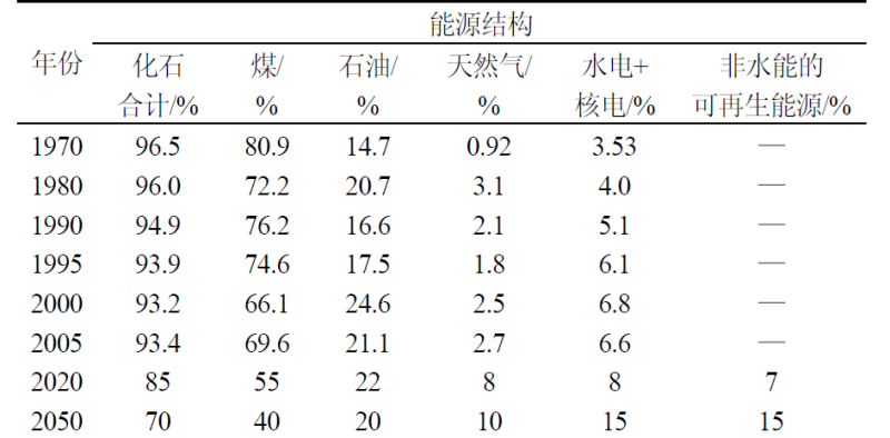 相關(guān)統(tǒng)計數(shù)據(jù)顯示,20世紀(jì)70年代以來,化石能源在我國一次能源構(gòu)成中的占比呈逐年下降趨勢,但仍以煤炭為主。