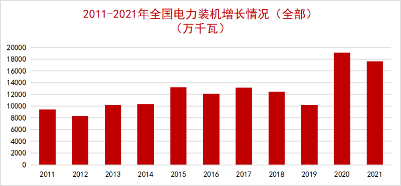 2011-2021年全國(guó)分類(lèi)型電源新增裝機(jī)情況如下: