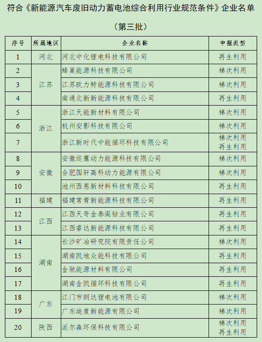 第三批動力電池回收企業(yè)白名單