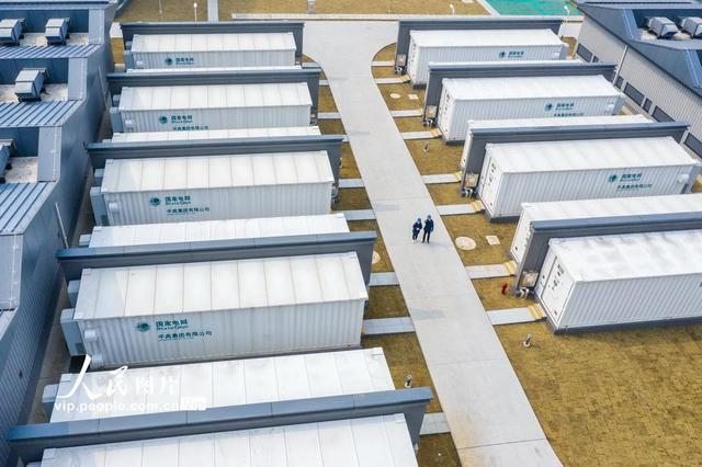 位于南京市江北新區(qū)新科十二路的江北儲(chǔ)能電站占地51.26畝,最大充放電功率110.88兆瓦,存儲(chǔ)容量193.6兆瓦時(shí),可儲(chǔ)存約19萬度電。儲(chǔ)能電站在用電低谷時(shí)“插在”電網(wǎng)上充電,在用電高峰時(shí)釋放電力,有效填補(bǔ)電力缺口。杜懿攝(人民圖片網(wǎng))