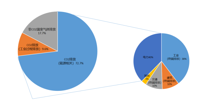 2020年我國碳排放結(jié)構(gòu)圖(資料來自清華大學(xué)氣候變化與可持續(xù)發(fā)展研究院)