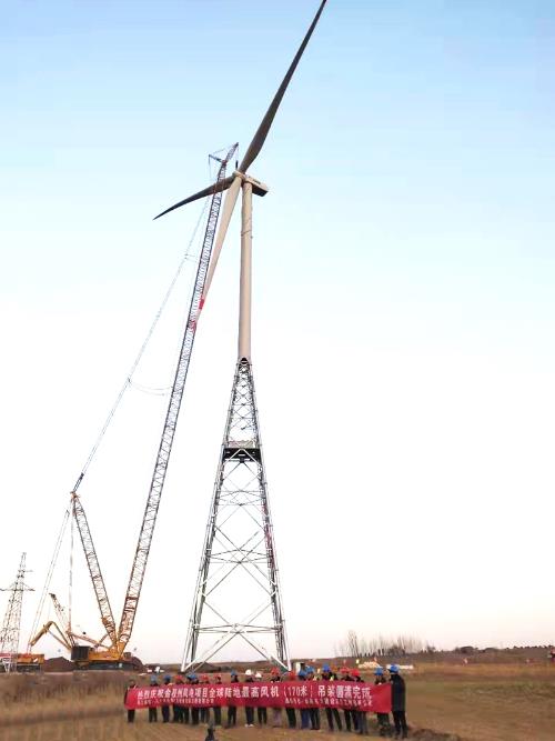 中國儲(chǔ)能網(wǎng)訊:近日,中國電建所屬山東電建三公司金膠州里岔分散式風(fēng)電項(xiàng)目6號(hào)風(fēng)機(jī)成功吊裝,該風(fēng)機(jī)預(yù)應(yīng)力桁架式塔架高度91.4米,風(fēng)機(jī)安裝高度達(dá)170米,是國內(nèi)第一高塔架,也是目前全世界最高的風(fēng)機(jī)。