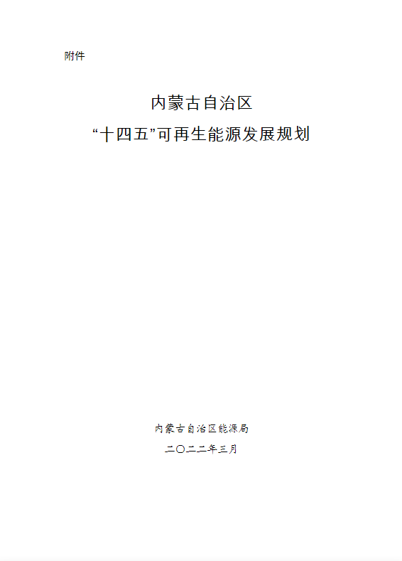 內(nèi)蒙古自治區(qū)能源局關(guān)于印發(fā)《內(nèi)蒙古自治區(qū)“十四五”可再生能源發(fā)展規(guī)劃》的通知
